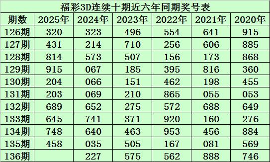 陈青峰福彩3D第2025136期推选:
