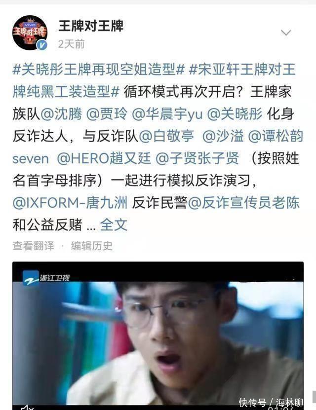 之前还提到蔡徐坤,不就可以说蔡徐坤上王牌了。还多次提到鹿晗,平直说鹿晗为关晓彤上王牌。